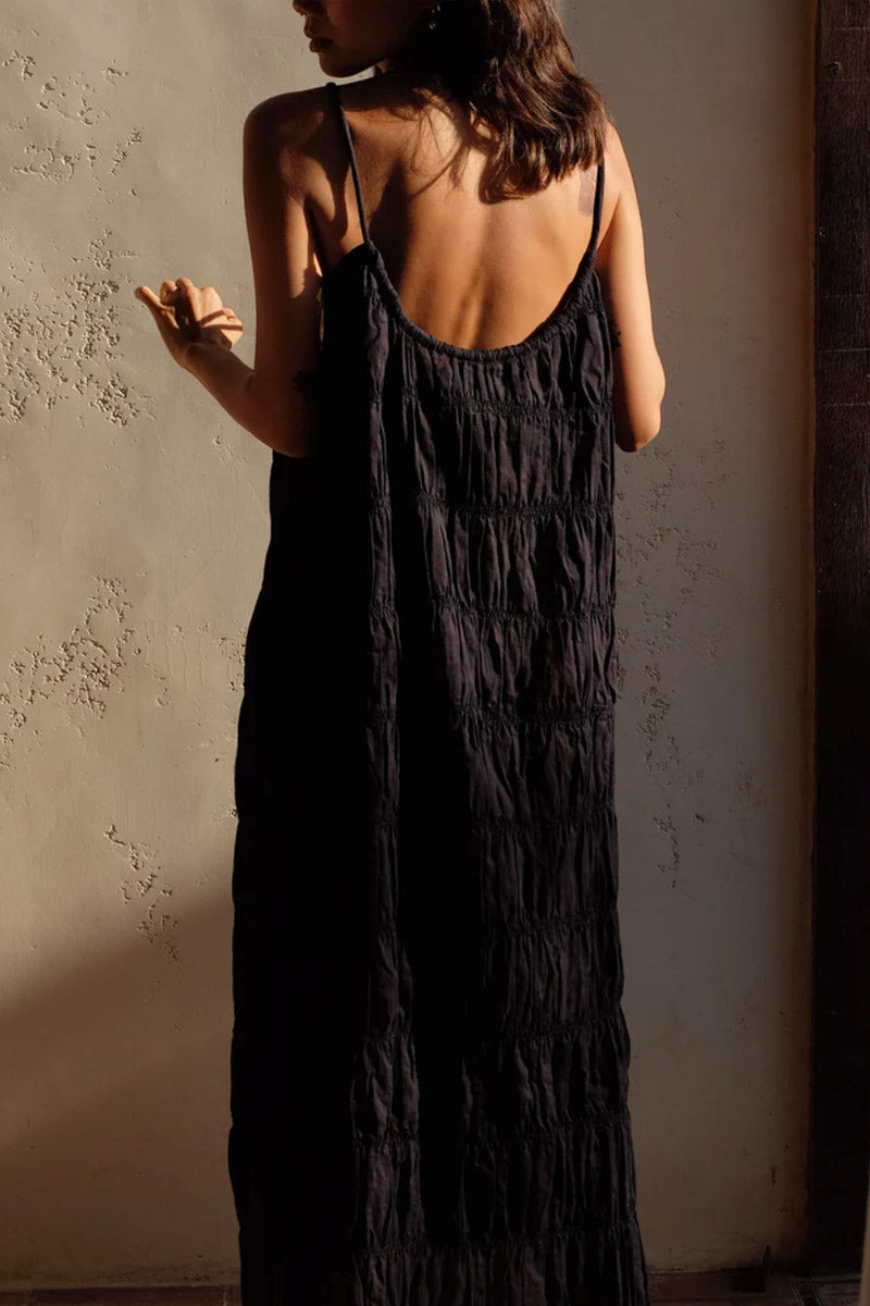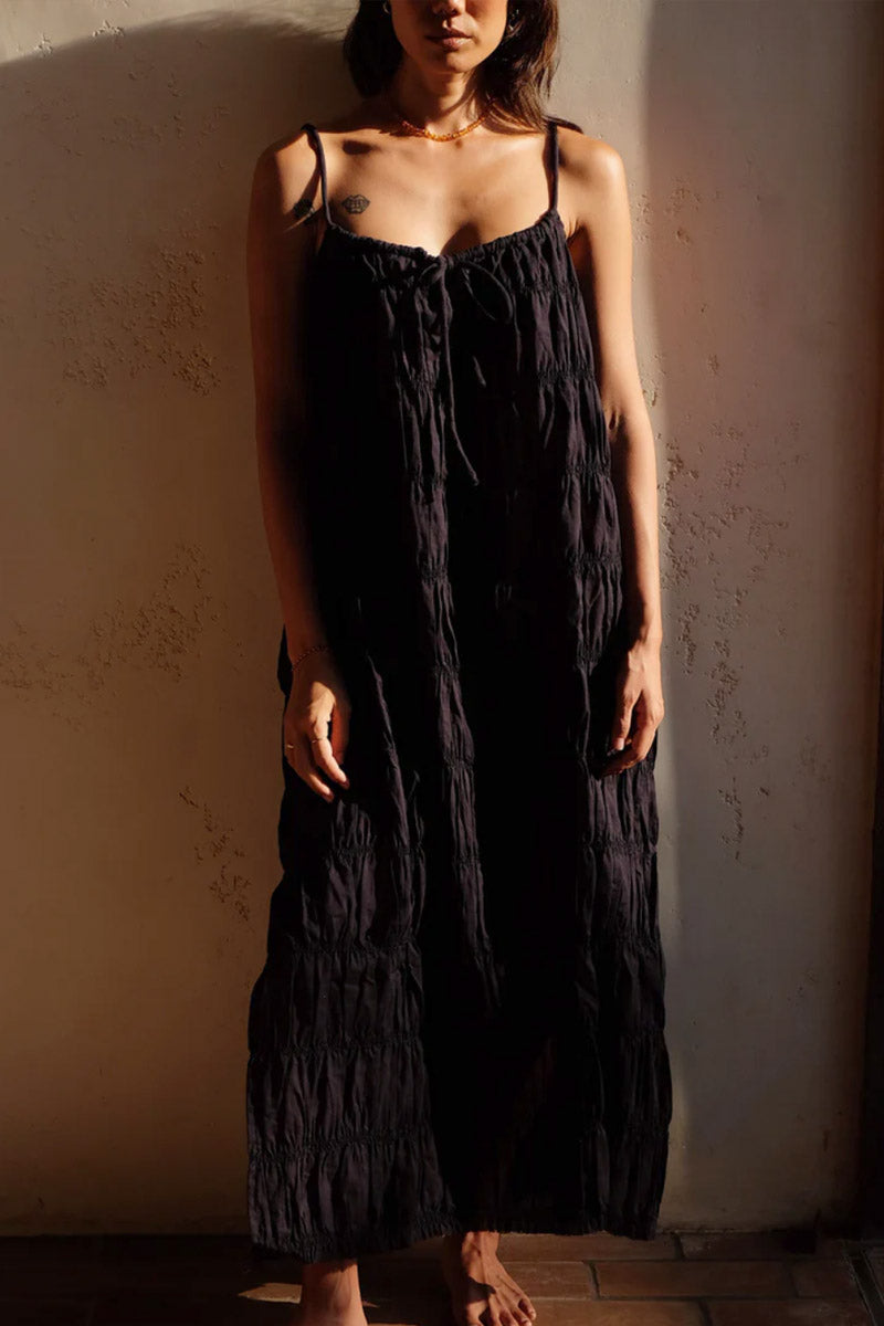 MORAN CLOUD TIE MAXI DRESS | hitam